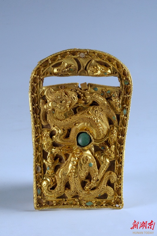 嵌绿松石螭龙纹金带扣。湖南省博物馆 供图