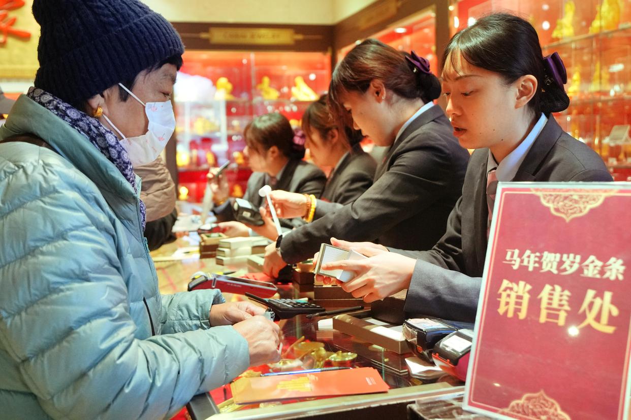 “接到短信通知就来买了。”正在柜台前选购金条的市民李先生告诉记者,自己已经连续买了11年贺岁金条,每年购买时再预订下一年的,“到明年就集齐十二生肖了!留着以后传给孩子们。”