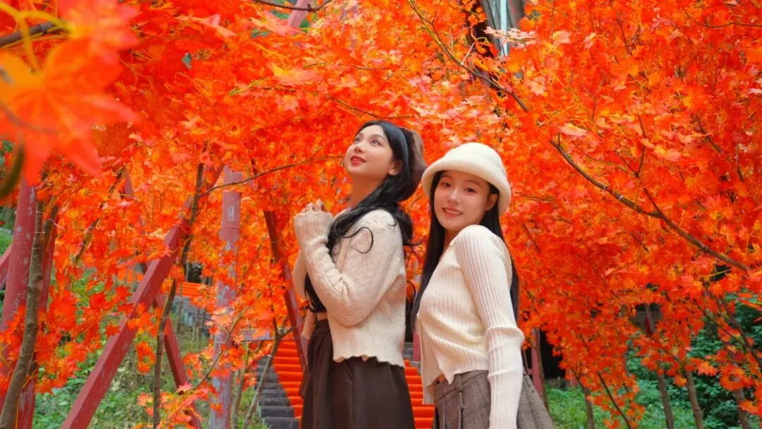 披上了一年中最特别的“限时皮肤”枫叶红得炽烈