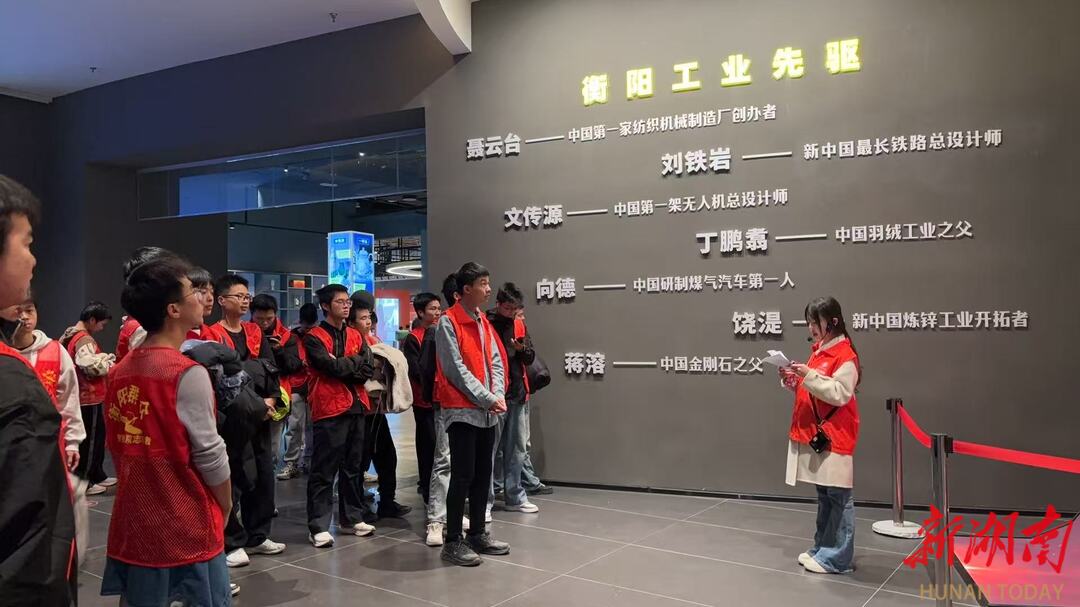 在衡阳老工业基地文展馆,学生志愿讲解员带领大家参观馆内丰富的图文史料与珍贵实物,深入了解衡阳工业从筚路蓝缕的初创阶段,到新时代“衡阳制造”实现创新突破的发展历程。