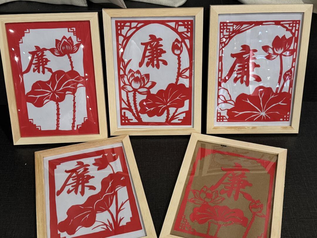 在众多参赛作品中,同学们将专业所长与主题深度融合,涌现出不少创意鲜明的佳作。环境艺术设计专业学生陈鑫,聚焦“廉洁与生活的关联”,拍摄短视频《廉洁近在咫尺》,将廉洁理念融入学生日常不起眼的小事中。视觉传达专业学生李亚馨则以非遗剪纸为载体,创作《红剪映廉》——作品以红底白纹勾勒出洁净素雅的莲花纹样,背后藏着她的创作初心:“之前学院邀请非遗剪纸传承人开讲座时,老师说‘剪什么像什么,做人也要表里如一’,这句话让我深受触动。我想用剪纸这门传统技艺传递廉洁信念,唯有公正廉洁,才能赢得真正的尊重。”
