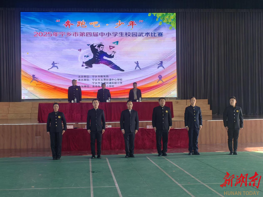 开幕式上,玉潭街道实验小学校长蔡粒波在致辞中表示,武术是中华优秀传统文化的瑰宝,她希望所有参赛少年们以此次比赛为契机,不仅锤炼强健体魄,更能涵养坚毅品格。随后,宁乡市教育局普教科副科长喻杰勇宣布比赛正式开始。
