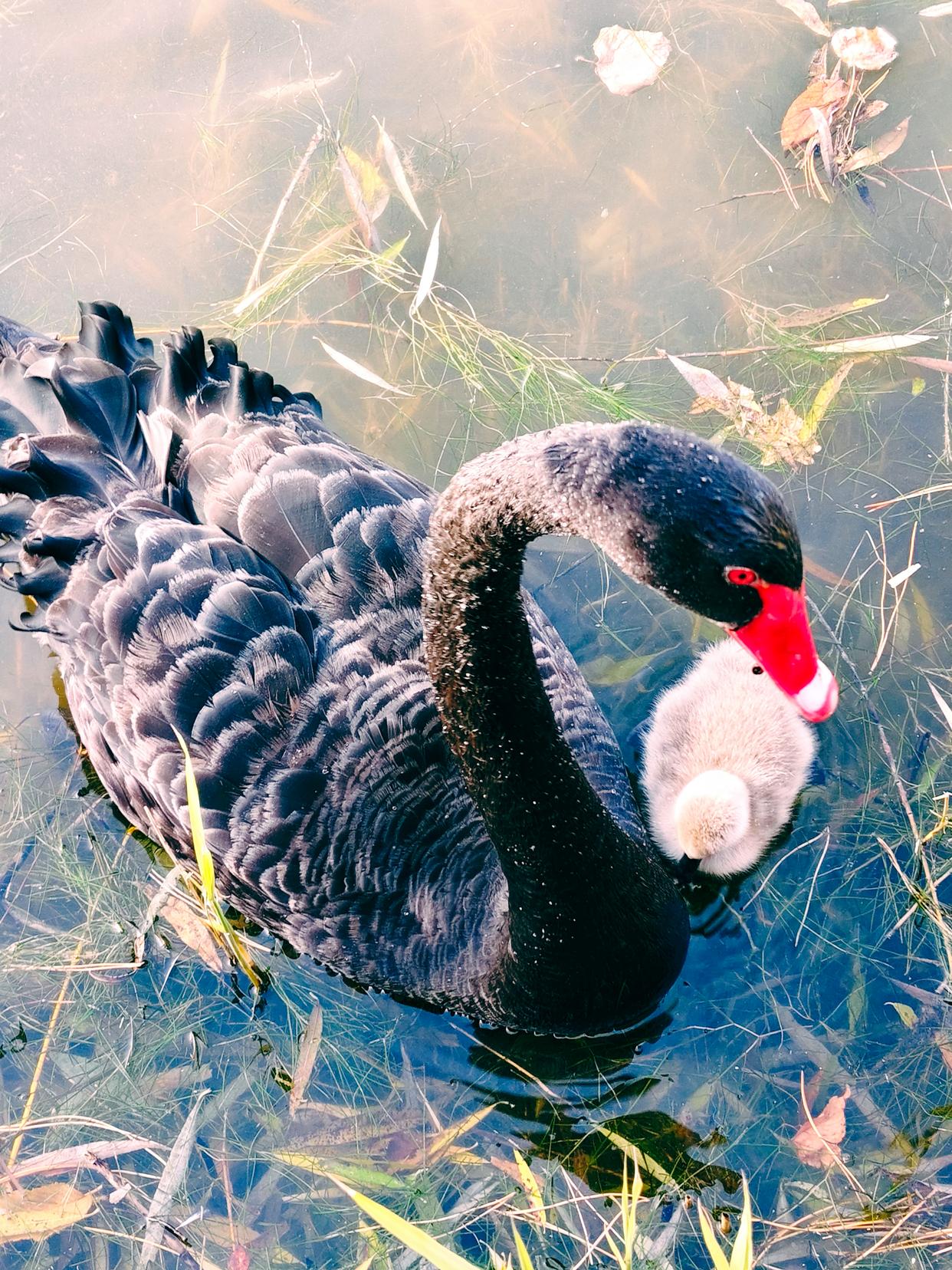 天鹅爸妈细心呵护,