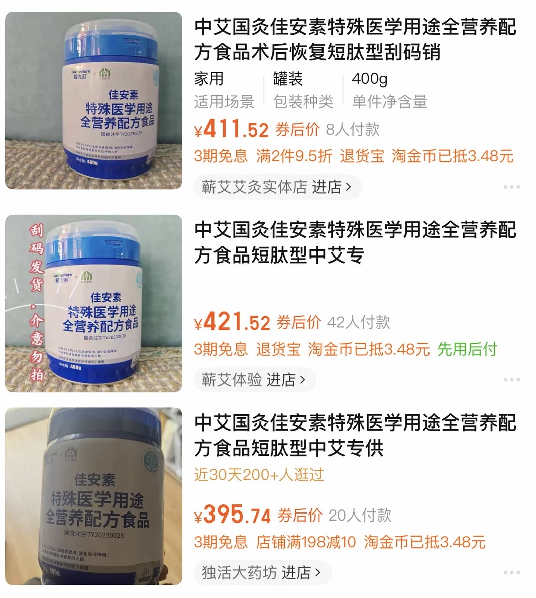 谢女士母亲所买的东西叫特医食品,一共买了6罐,花了2980块钱。谢女士此前从未听过特医食品的概念,母亲则把从艾灸馆工作人员那听到的话转述了一遍:“一个人平常吃饭,很多营养是补充不上的,必须喝特医食品才能把该补的营养补上。”
