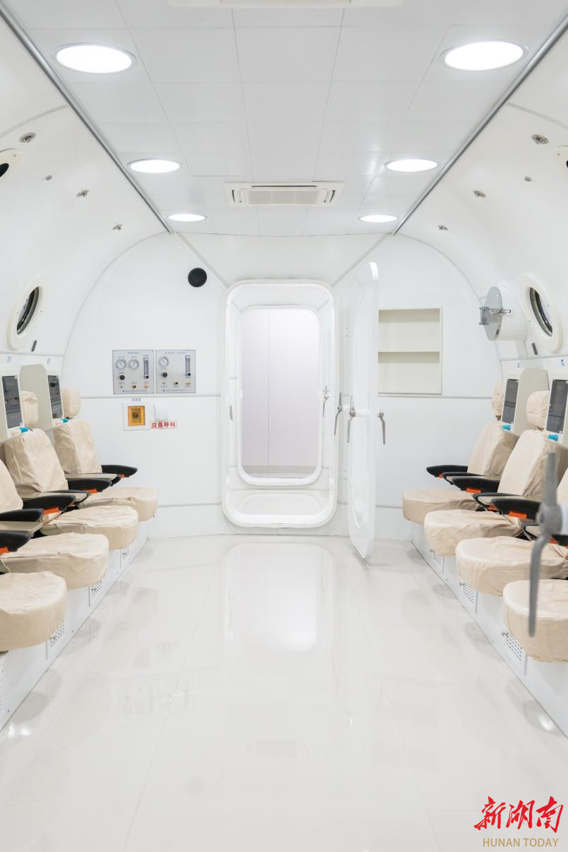 在硬件核心方面,该中心引进了具备国际先进水平的高压氧舱群。创新的“治疗舱+过渡舱”双舱设计,不仅实现了单次16人的治疗容量,提升了服务可及性,更增强了治疗过程的灵活性与应急保障能力。全套设备经过严格的技术检测与维护,确保处于最佳性能状态,为每一次治疗筑牢安全基础。