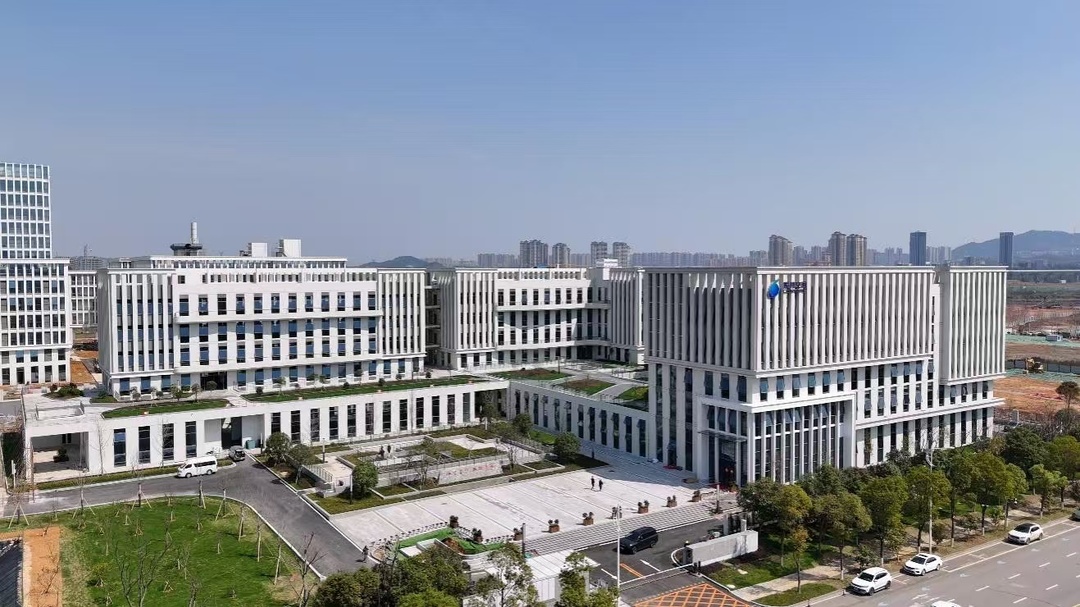 阳光倾泻,玻璃幕墙反射出亮眼的光芒,映照着湖南湘江新区北斗产业园黄金园区A3栋。