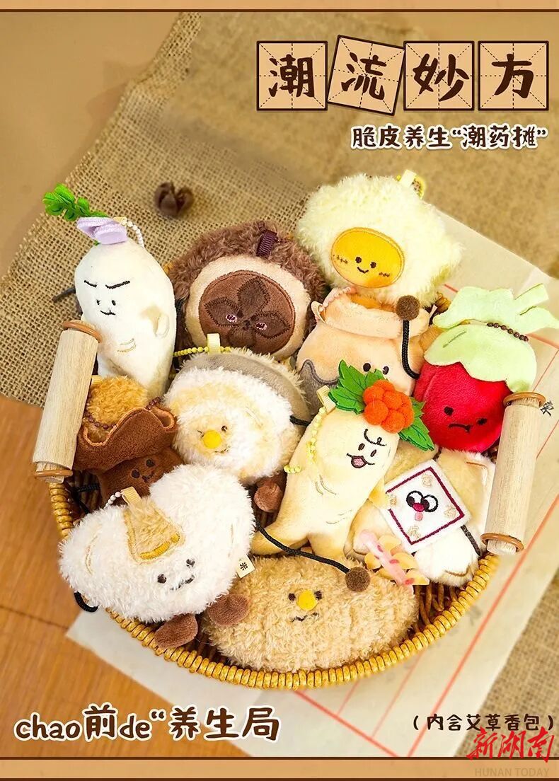 活动当天,预定内服膏方、张氏正骨外治贴膏、岳膳馆门店充值,(可组合)满300元,即可获赠“中草药文创玩偶”一个!集满6个文创玩偶,还可兑换岳膳馆门店百元现金券。限定款“萌趣”潮玩,等你来收集!