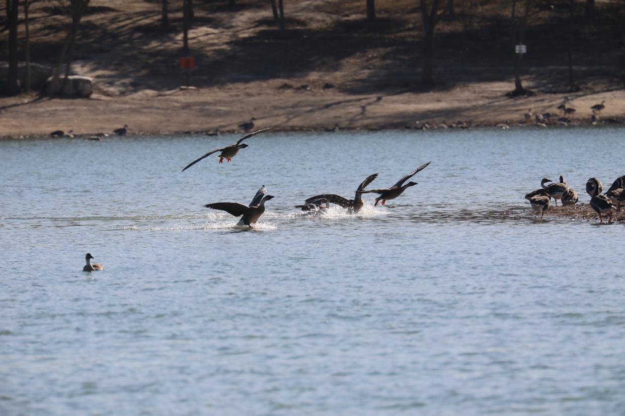 北京大兴区南海子公园游船项目开始了冬季停航,水面上没有了游船,更多的空间就给了迁徙至此的野生动物们。