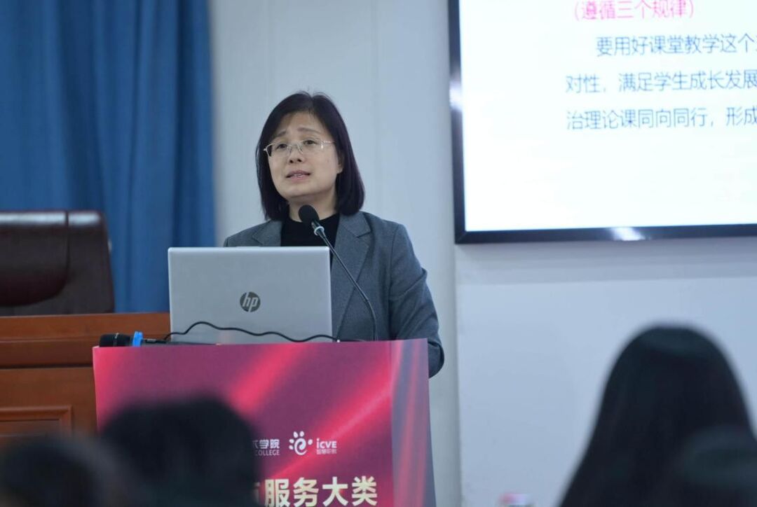 民政职业大学教务处负责人、副教授皮微云作《课程思政育人共同体的构建与实践》专题报告。报告系统梳理了课程思政育人共同体的理论内涵与实践路径,并结合典型案例,生动呈现了多方协同育人新模式的构建过程,有效打破思政教育与专业教学之间的壁垒。其内容兼具理论高度与实践价值,为落实立德树人根本任务提供了有益参考。