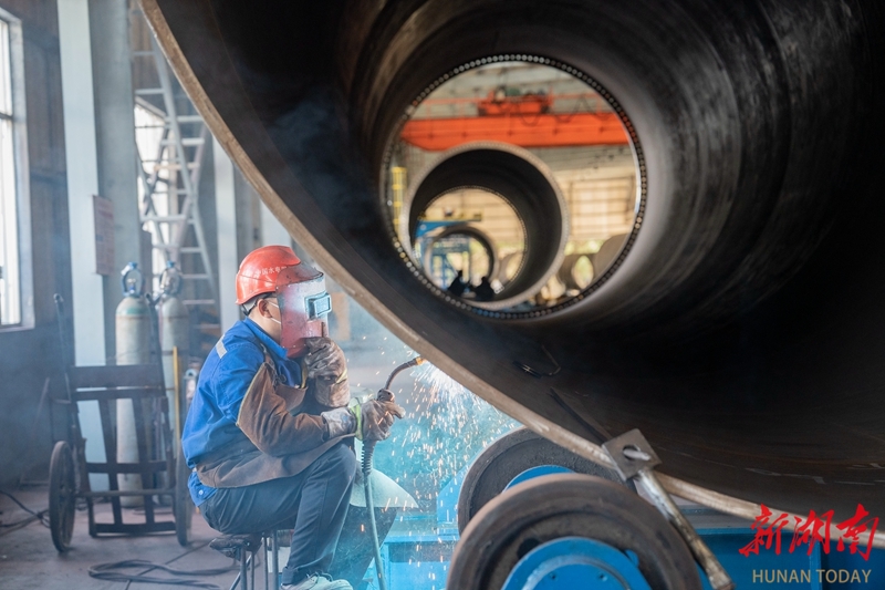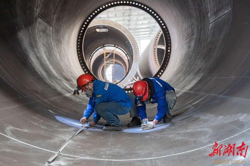 11月27日,衡山高新区湖南恒岳重钢钢结构工程有限公司,工人操作智能检测装备对风电机组大型部件平面度进行检测。该公司主要深耕兆瓦级风电塔架研发与生产,其联合高校攻关的“风电机组大型部件平面度智能检测装备”技术,成功实现进口设备替代,为我国高端装备产业升级注入新动能。 湖南日报全媒体记者 李健 摄