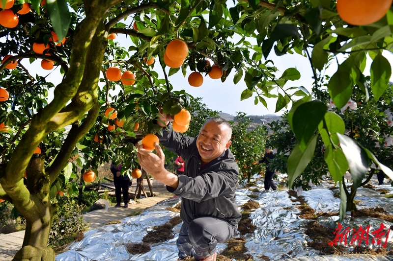11月27日,吉首市马颈坳镇米坡村,肢体三级残疾的村民黄立权在收获柑橘“爱媛28号”(红美人)。近年来,黄立权凭借顽强毅力自主创业,开发种植了近300亩优质柑橘“爱媛28号”(红美人),不仅自己富裕起来,还帮扶带动200多户残疾人家庭共同发展特色种养产业,拓宽增收渠道,走上共同富裕之路。姚方 石雪源 摄影报道(湖南图片库)