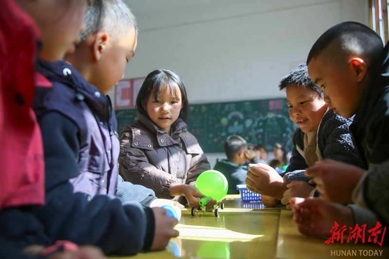 11月27日,隆回县虎形山瑶族乡九年义务制学校,孩子们动手制作气球驱动小车。今年以来,隆回县科协联合多部门组织青少年科技创新名师工作室117名教师,定期到农村及边远学校开展“百名院士进校园、万名科技工作者上讲台”科技送教活动,通过科普活动、示范课、讲座等形式,为乡村学校送去科技教育新理念和新方法,促进城乡教育均衡发展。曾勇 陈勇 摄影报道(湖南图片库)