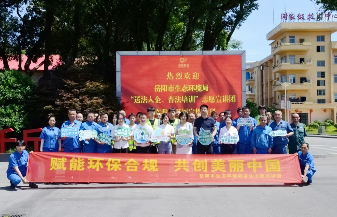 ▲岳阳市生态环境局普法志愿宣讲团开展“送法入企、普法培训”志愿宣讲。