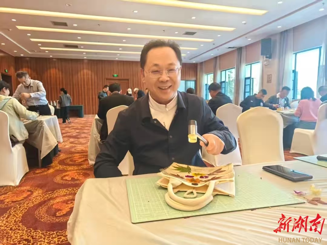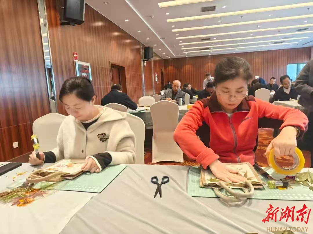我发现长沙劳模刘婷专注俯身,像寻宝般与每朵花儿、每片叶子窃窃私语。她也觉得,最治愈的莫过于捶打的瞬间。“咚、咚、咚”的声响如同古老仪式,隔着棉布,看汁液缓缓渗出浸润,心中充满奇妙的期待。当她小心翼翼揭开叶片时,叶脉的纤维、花瓣的渐变、边缘的锯齿,都清晰地复刻于帆布之上。它仿佛不是印迹,而是自然的馈赠——带着植物纤维的肌理与草木的清香。很自然,这不仅是色彩的转移,更是对生命的温柔低语。益阳劳模王东晖感喟道,手工拓印,看似简单,实际上是一个技术活。亲手把大自然的美镶嵌在布袋上,既新学了技能,又愉悦了心情。