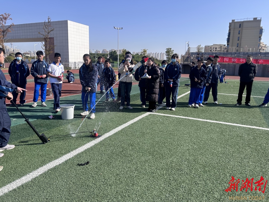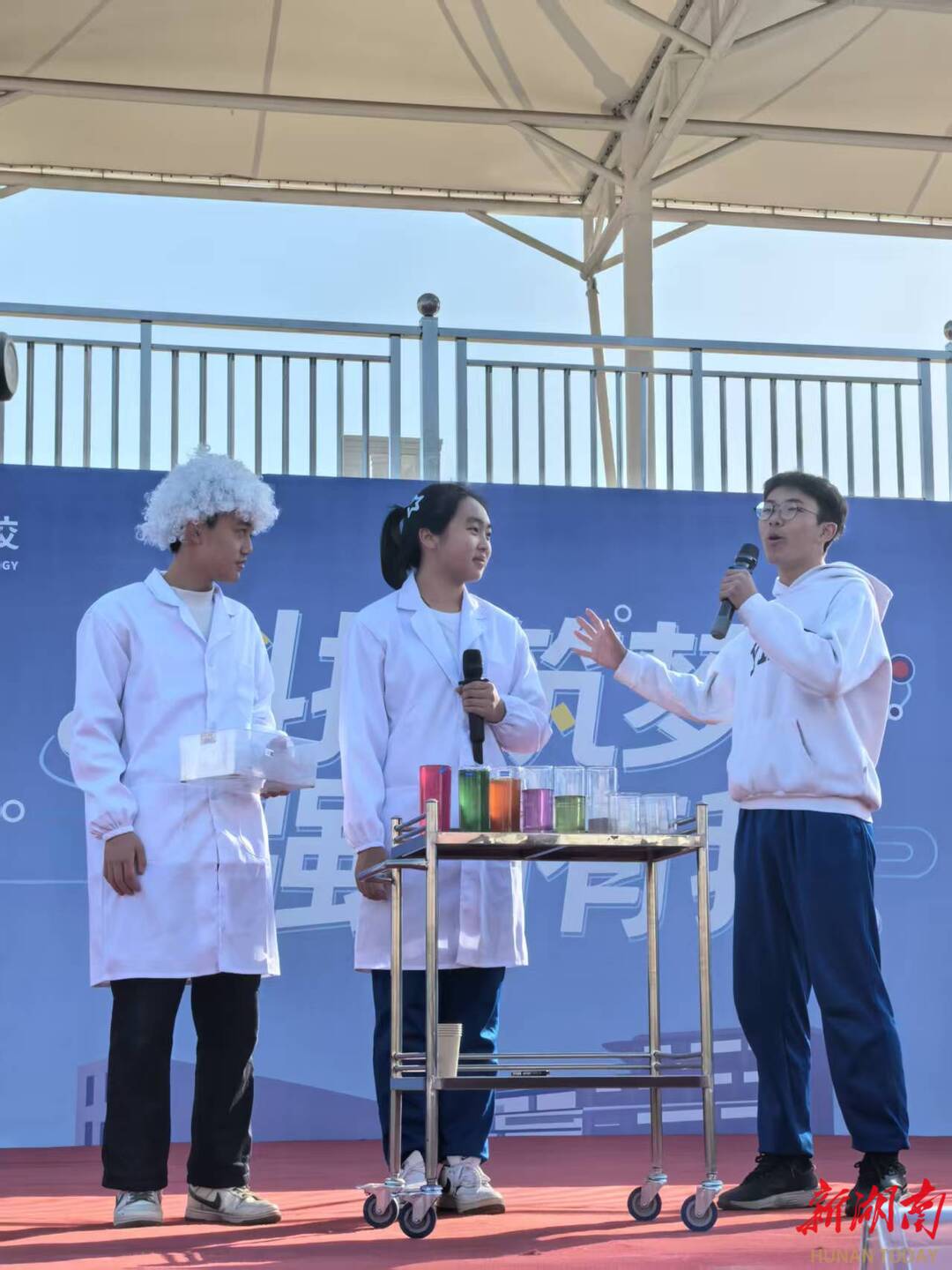 开幕式上,庄严的升旗仪式后精彩节目轮番上演:舞蹈社团活力绽放、主持社团深情朗诵、《追光少年》校歌嘹亮动人、物理组“气球风火轮”、化学组“跳动的空气炮”等趣味实验惊艳全场,航模表演点燃全校师生的科技热情。