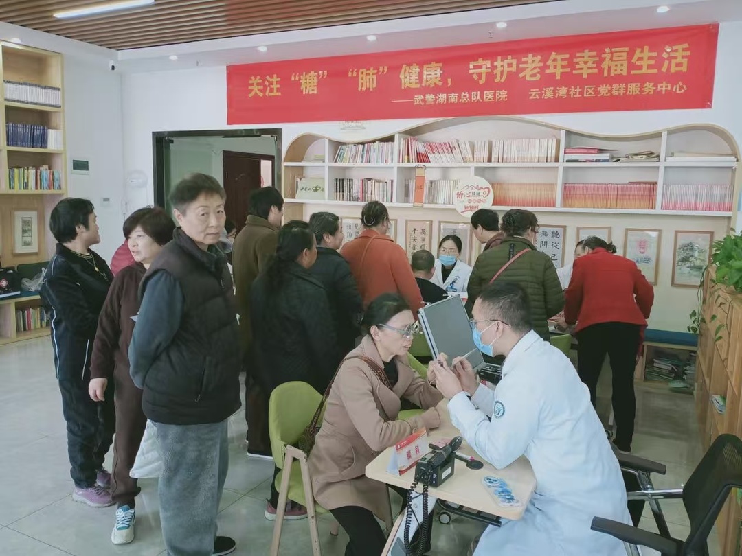 湖南日报·新湖南客户端11月28日讯(通讯员 杨凯 谢博)为积极响应“健康中国”战略及“服务百姓健康行动”号召,在“世界慢阻肺日”与“世界糖尿病日”来临之际,湖南湘江新区梅溪湖街道云溪湾社区今天特邀武警湖南总队医院专家团队开展大型义诊活动,将三甲医院优质医疗资源送到居民家门口。这是该社区今年第二次携手该院开展惠民义诊,以实际行动打通健康服务“最后一公里”。