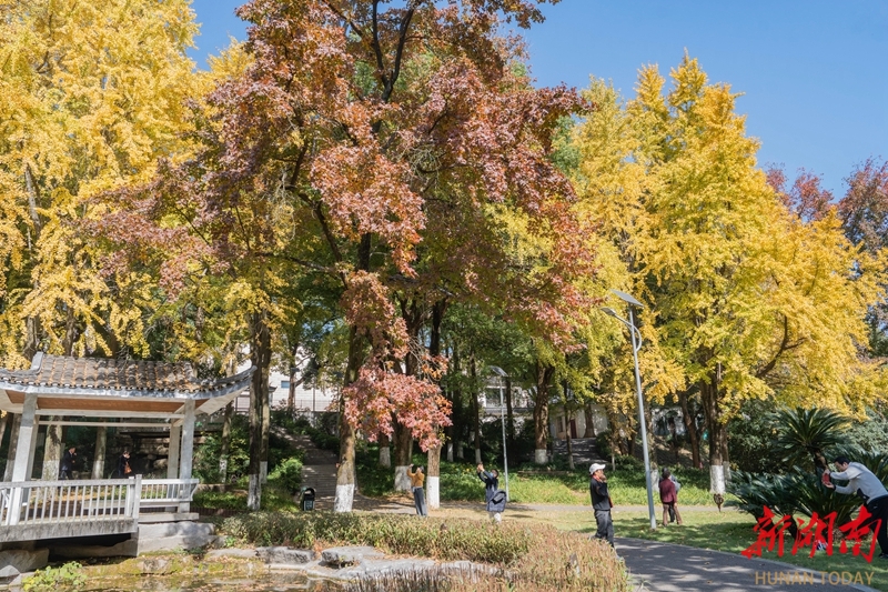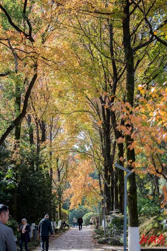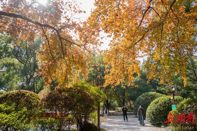 11月28日,湖南烈士公园枫叶转红、梧桐泛黄、银杏镶金,构成了五彩斑斓的初冬画卷,吸引了众多市民游客前来共享冬日美好时光。湖南日报全媒体记者 李健 摄