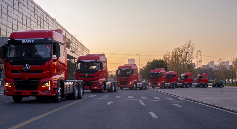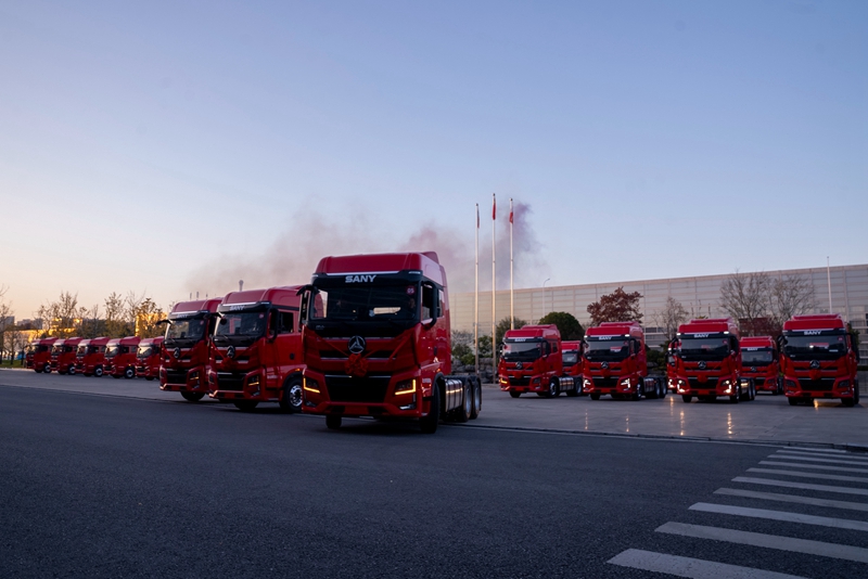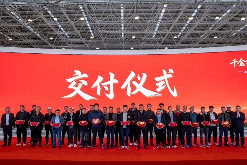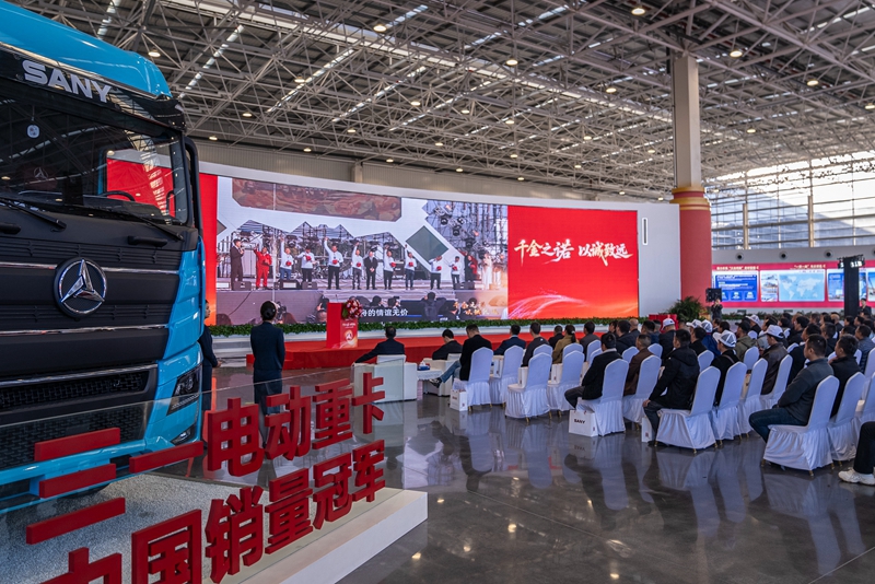 11月28日,长沙县三一智联重卡产业园,三一重卡举行第四批英雄车主免费换车仪式,为28位早期用户交付全新车辆。今年是三一重卡第四次开展免费换车活动。图为发车仪式现场。 湖南日报全媒体记者 童臻熙 谢卓芳 摄影报道