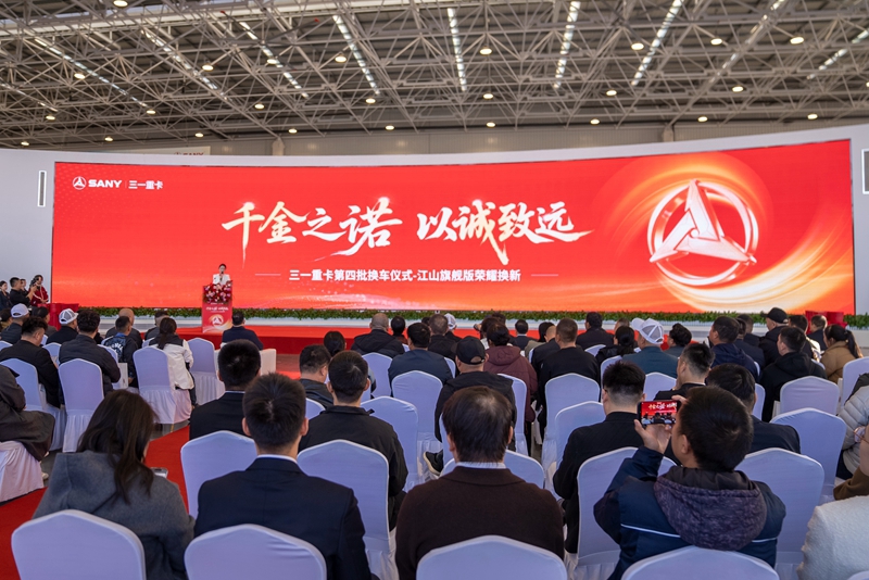 11月28日,长沙县三一智联重卡产业园,三一重卡举行第四批英雄车主免费换车仪式,为28位早期用户交付全新车辆。今年是三一重卡第四次开展免费换车活动。 图为仪式现场。湖南日报全媒体记者 童臻熙 谢卓芳 摄影报道