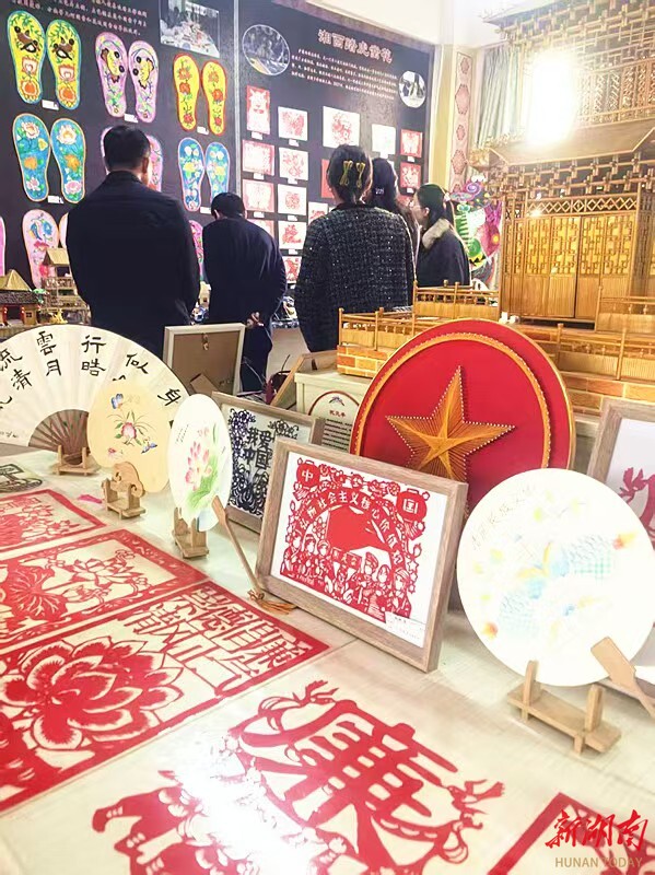 乾元小学巧妙地将非遗廉洁文化融入课堂。“我们的美术课堂在制作每一件作品前,就会鼓励孩子们细心观察身边的生活参照物,再自己动手制作。”乾元小学美术老师金玥介绍。记者看到美术作品展览室内,湘西剪纸、苗家鞋垫、吊脚楼、湘西傩面具等一系列湘西非遗民俗文化特色作品,在老师的指导下制作得栩栩如生。