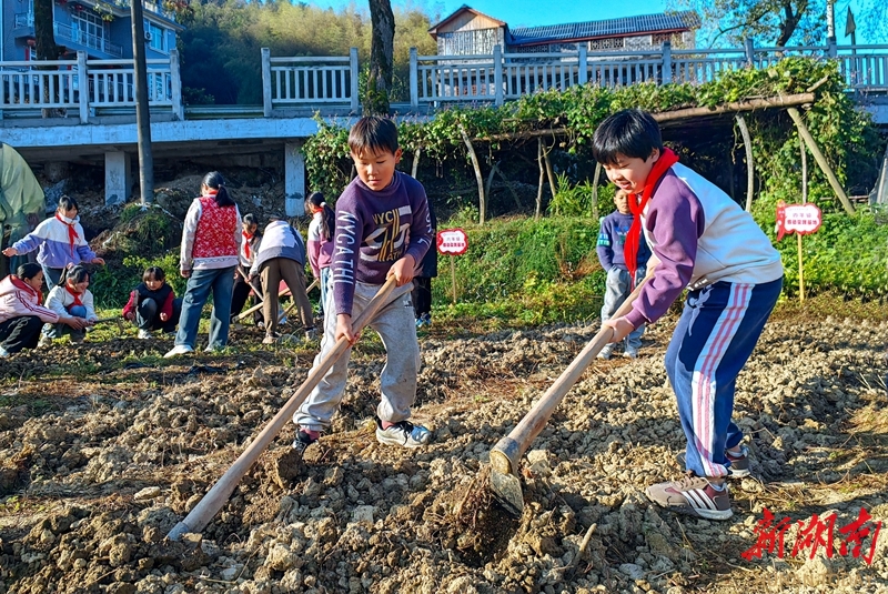 11月28日,吉首市寨阳小学劳动实践基地,学生挥锄翻土整地,准备移栽白菜。近年来,该校关工委依托特色校园劳动实践基地,开展种植瓜果、蔬菜等系列劳动实践活动,让学生从小在实践中感受劳动的艰辛和乐趣,学会劳动技能,赋能茁壮成长。高求君 姚方 摄影报道(湖南图片库)
