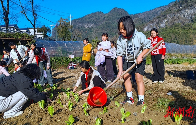 11月28日,吉首市寨阳小学劳动实践基地,学生在为移栽的白菜施肥。近年来,该校关工委依托特色校园劳动实践基地,开展种植瓜果、蔬菜等系列劳动实践活动,让学生从小在实践中感受劳动的艰辛和乐趣,学会劳动技能,赋能茁壮成长。高求君 姚方 摄影报道(湖南图片库)