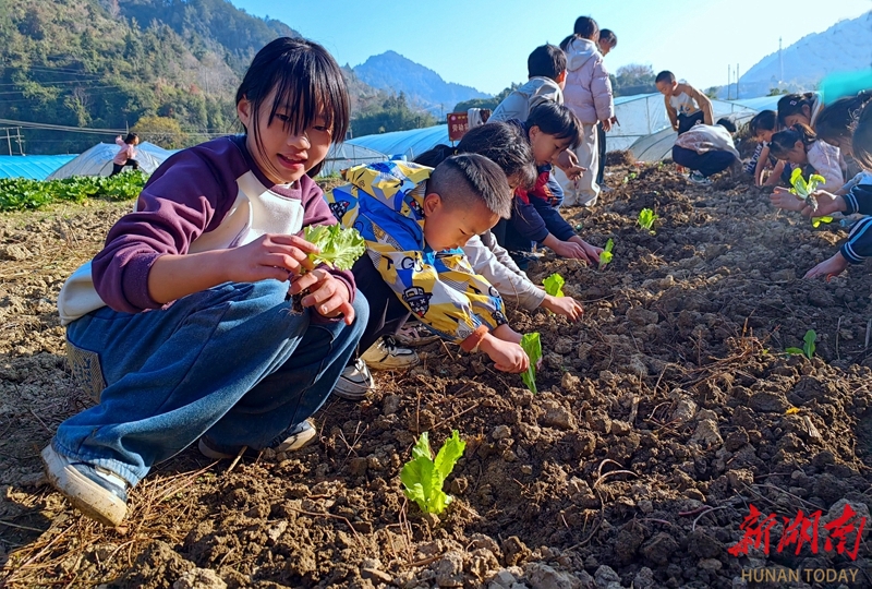 11月28日,吉首市寨阳小学劳动实践基地,学生在移栽白菜。近年来,该校关工委依托特色校园劳动实践基地,开展种植瓜果、蔬菜等系列劳动实践活动,让学生从小在实践中感受劳动的艰辛和乐趣,学会劳动技能,赋能茁壮成长。高求君 姚方 摄影报道(湖南图片库)