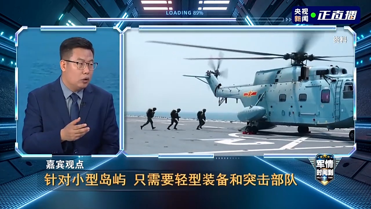总台军事观察员 魏东旭:首先,如果是在岛屿作战的环境当中,这个岛屿的面积有大有小。如果说岛屿的面积非常小,我们使用舰载直升机投送突击部队,然后再投送一些轻型装备,就可以针对小型岛屿完成快速地控制。对方的兵力可能就上不来了。但是,如果是面积比较大的滩头阵地或者是大型岛屿,这个时候,船坞登陆舰、两栖攻击舰可能就是以一种编队的形式去进行作战。所投送的兵力作战物资和装备非常多。这个时候大量的气垫登陆艇,它要不断地在滩头阵地和海上的大型运兵平台之间进行转运。所以越来越完善、越来越先进的两栖作战装备体系,可以让我们在岛屿攻防战的过程当中更有信心、更有制胜的能力。