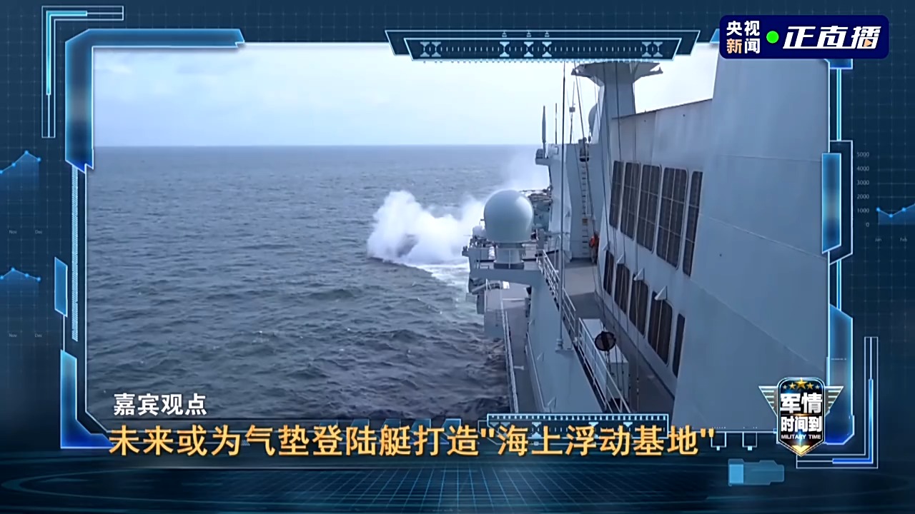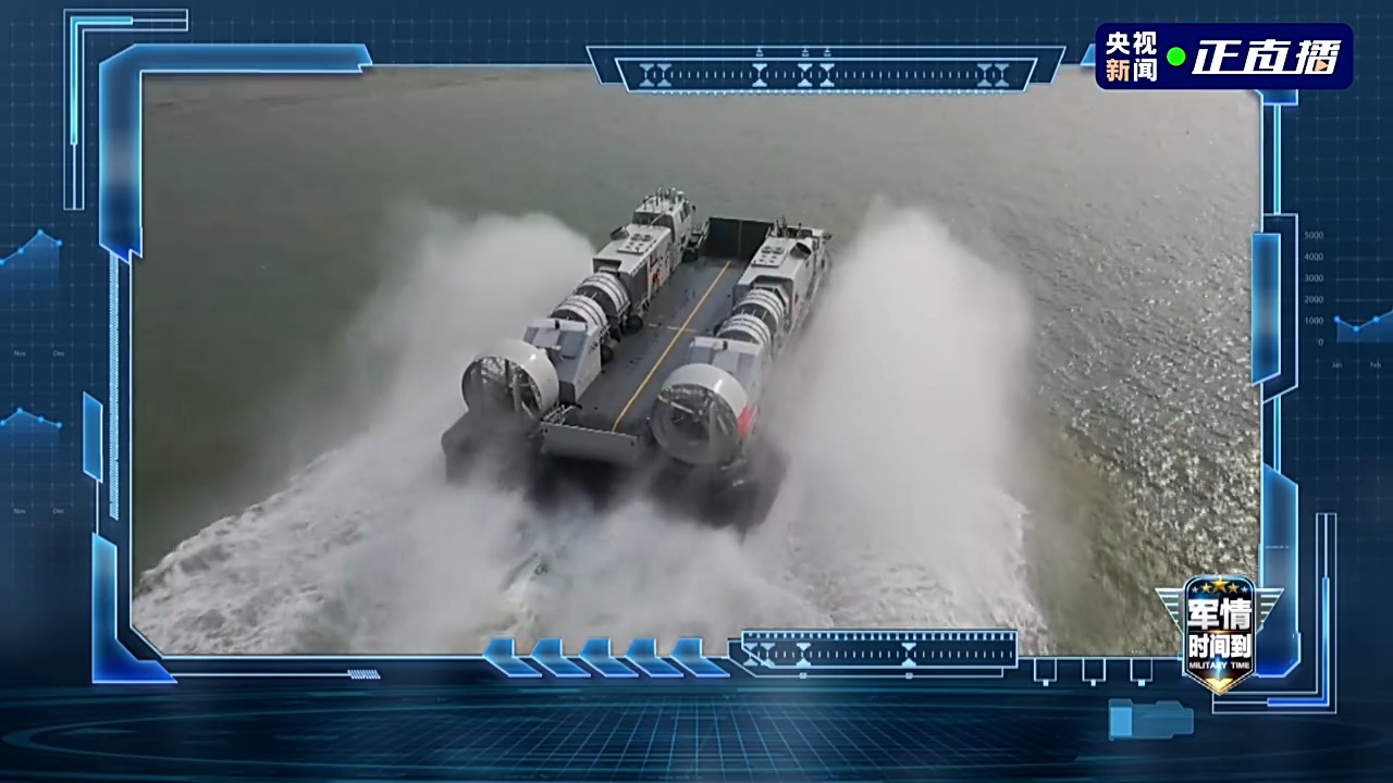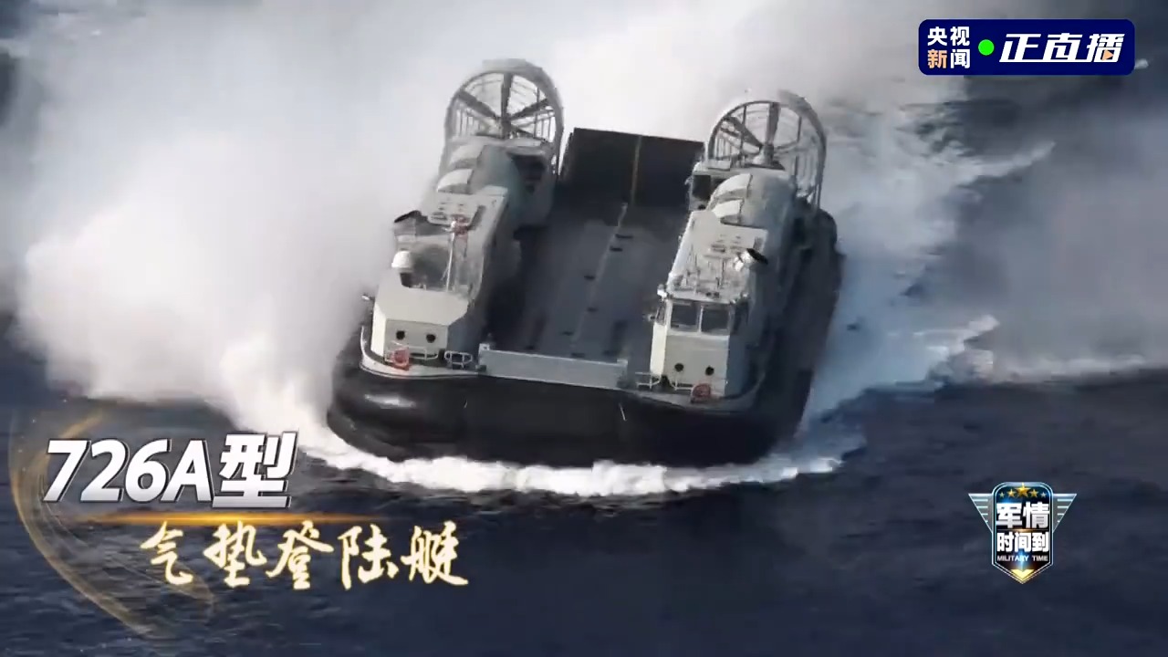 总台军事观察员 魏东旭:当它在海上高速行驶的过程当中,你甚至会有这种推背感。就是它的航行速度要远远超过一般的水面舰艇,人民海军的舰艇当中,726A型的气垫登陆艇,它是唯一一个会“轻功”的装备。而且它有一个非常大的优势,它可以从海上,直接能够在沙滩上和沿海的区域上进行行驶。所以当它投送部队的时候,作战人员是鞋不沾水就可以到达我们的任务区域。所以既高效又便捷,而且非常快速。