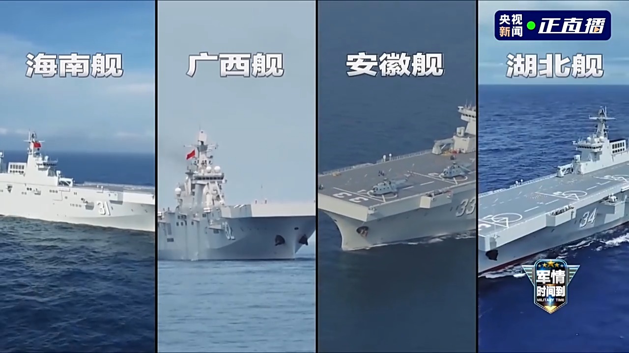 主持人:刚才我们也在短片当中跟大家介绍了,我们现在的两栖攻击舰,两栖攻击舰是我们的两栖作战体系的一个核心的装备,是一个枢纽装备,它可以发挥什么样的作用?