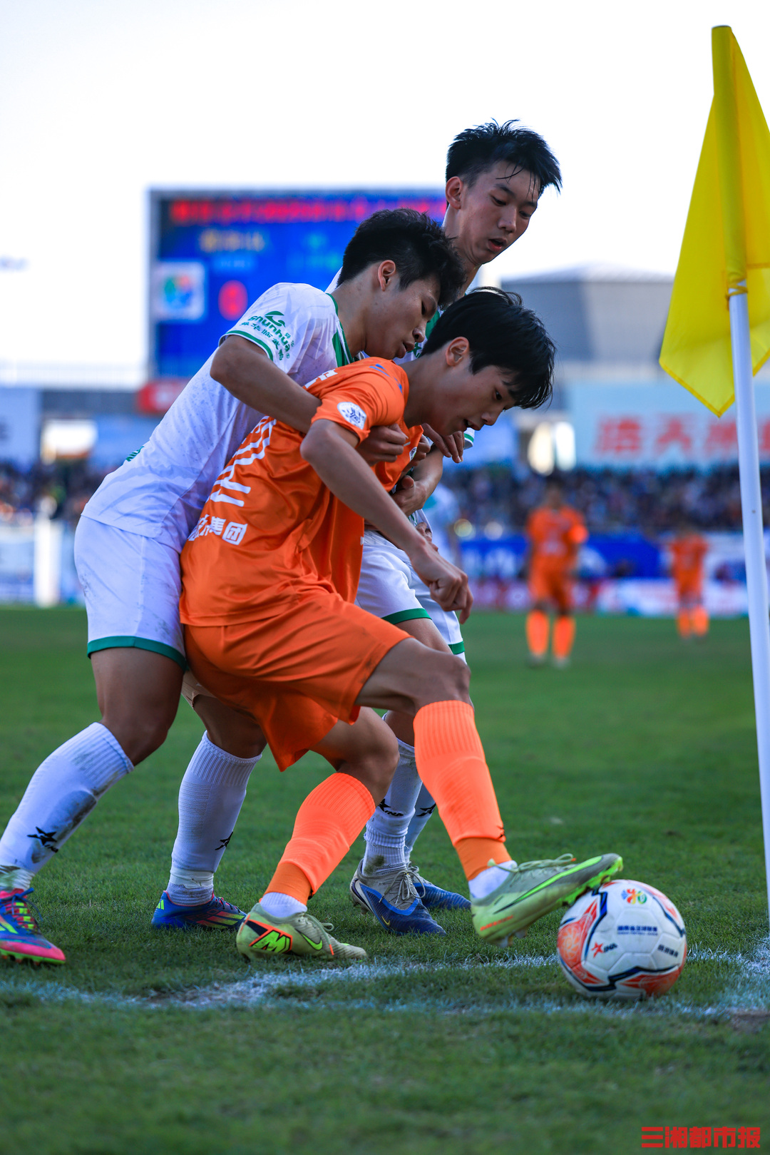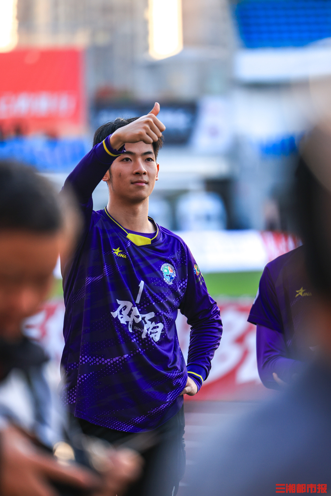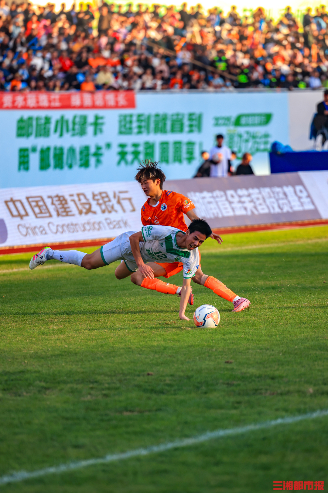 11月29日下午,邵阳市体育中心,邵阳队主场迎战郴州队。最终,双方1比1战平,这是邵阳队本赛季湘超联赛第一轮比赛的最后一个主场。最后一轮,他们将客场对阵怀化队。(全媒体记者 刘丰 叶竹 戴鹏 摄)
