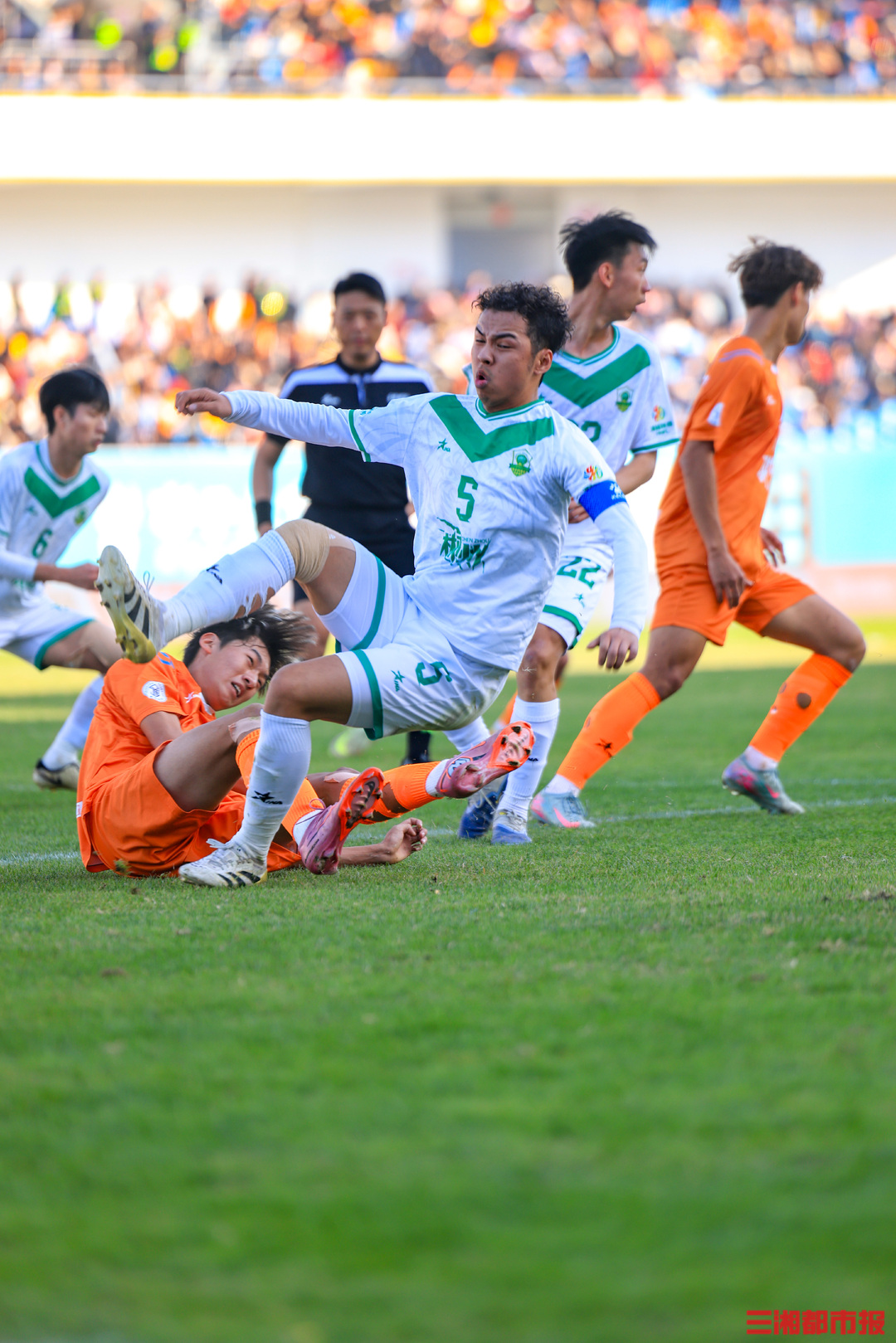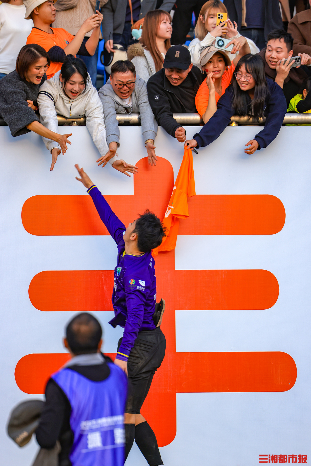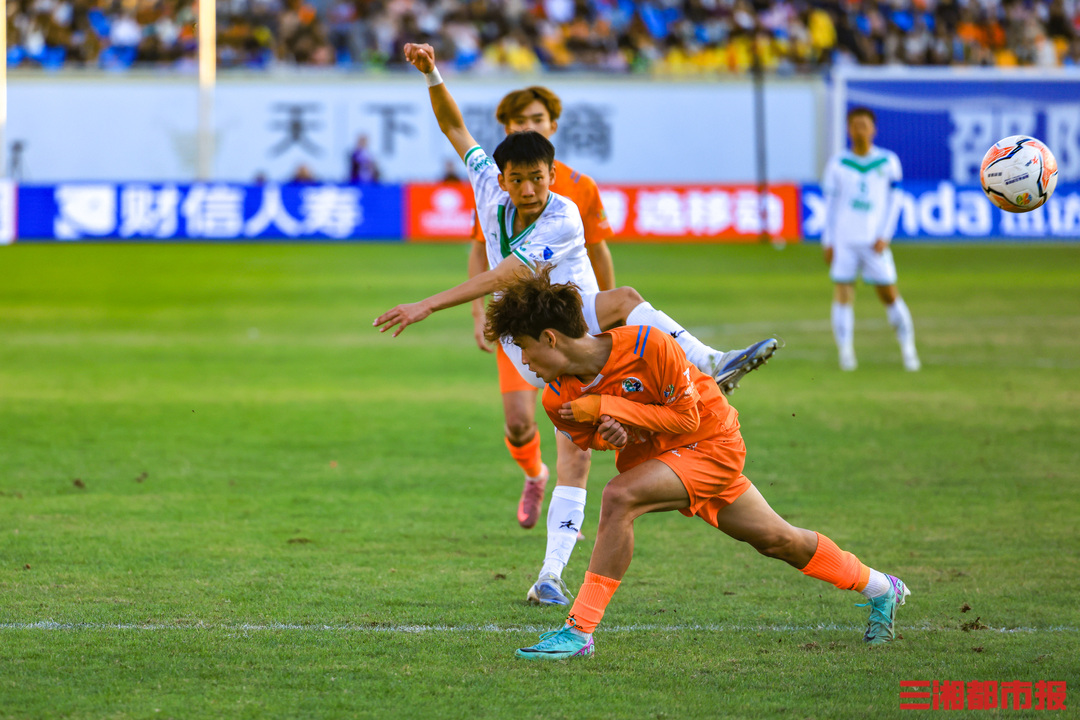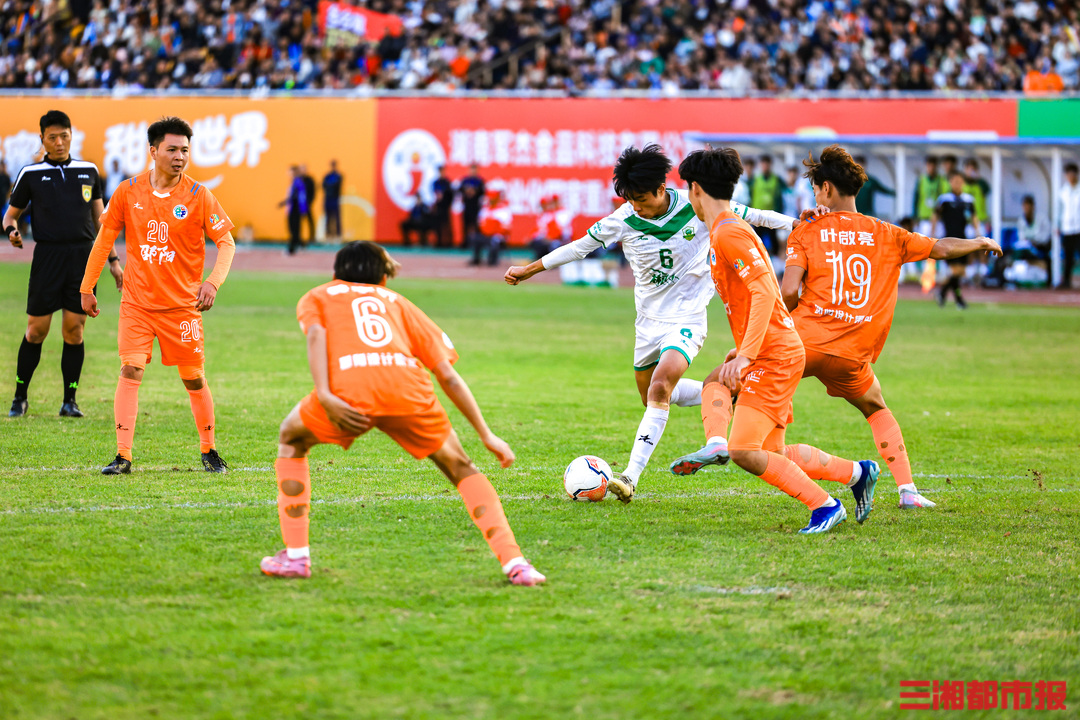 11月29日下午,邵阳市体育中心,邵阳队主场迎战郴州队。最终,双方1比1战平,这是邵阳队本赛季湘超联赛第一轮比赛的最后一个主场。最后一轮,他们将客场对阵怀化队。(全媒体记者 刘丰 叶竹 戴鹏 摄)