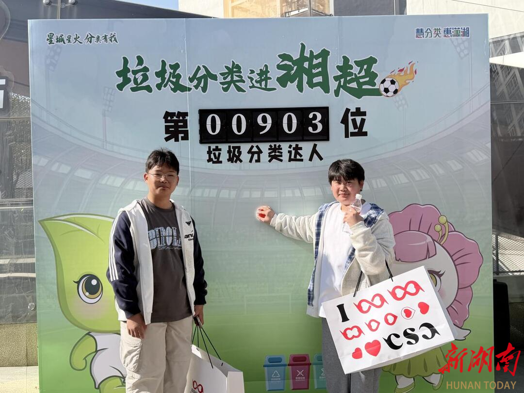 湖南日报·新湖南客户端11月29日讯(通讯员 李政伦)今天下午,贺龙体育中心外场人声鼎沸,激情四射的足球赛事与如火如荼的环保宣传在此交汇。一场别开生面的“星城星火·分类有我——垃圾分类进湘超”主题宣传活动同步火热上演,以创新形式将垃圾分类的绿色理念植入火热的体育氛围中,吸引了大量球迷、市民与志愿者的积极参与,成为赛场外一道亮丽而富有教育意义的风景线。