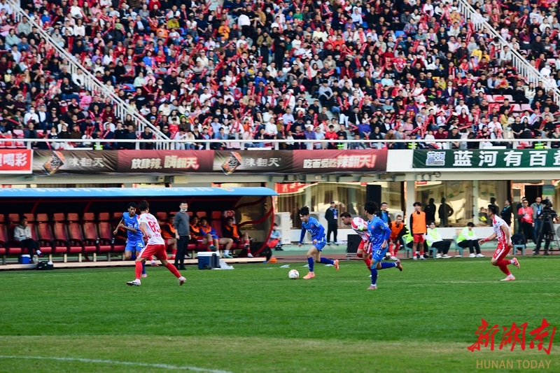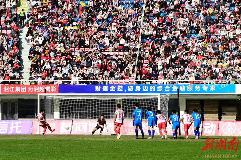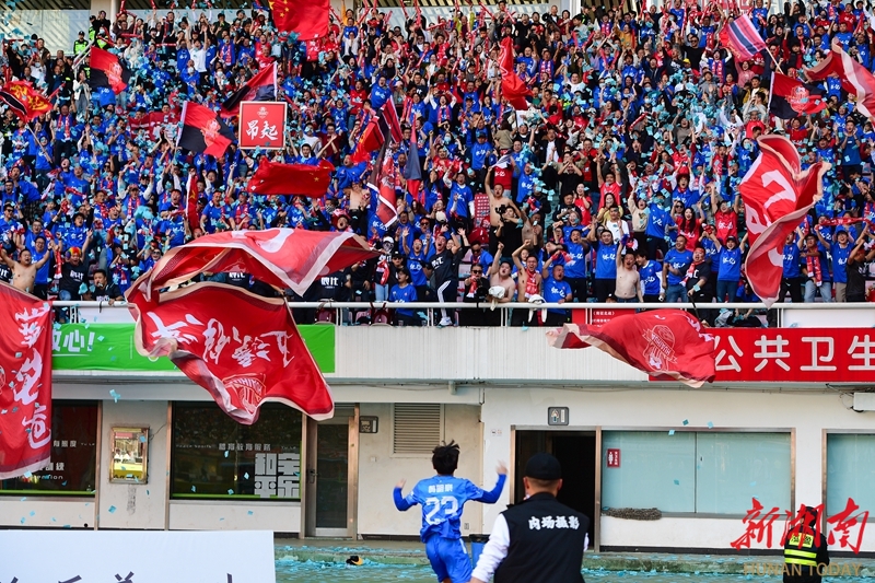 11月29日,长沙贺龙体育中心,球迷在加油助威。当天,湘超联赛第十二轮比赛,长沙队主场迎战怀化队。最终,长沙队4比1战胜怀化队。潘雨 摄(湖南图片库)