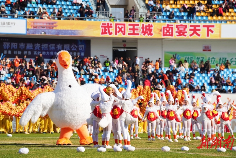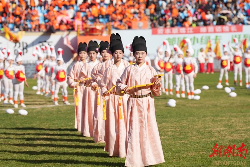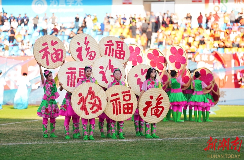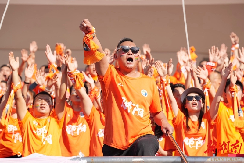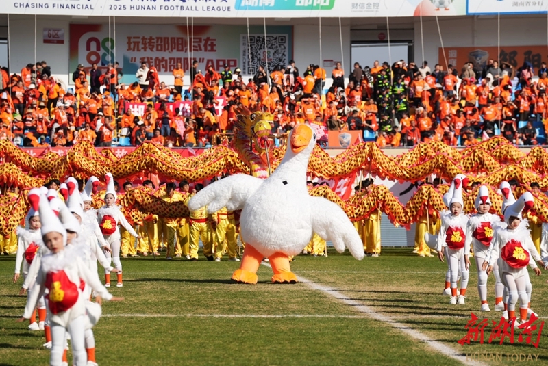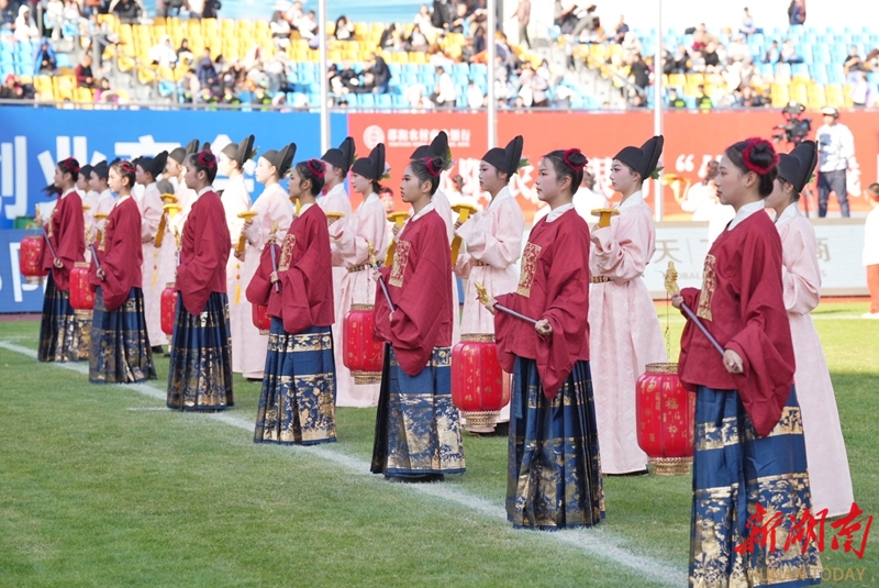 11月29日,邵阳市体育中心,文艺演出精彩纷呈。当天,湘超联赛第十二轮比赛,邵阳队主场迎战郴州队。最终,邵阳队1比1战平郴州队。申兴刚 摄(湖南图片库)