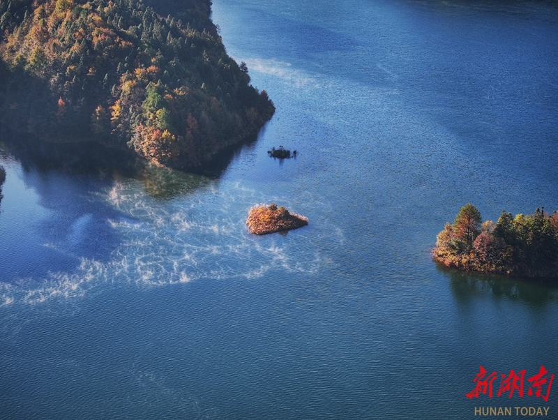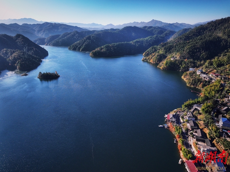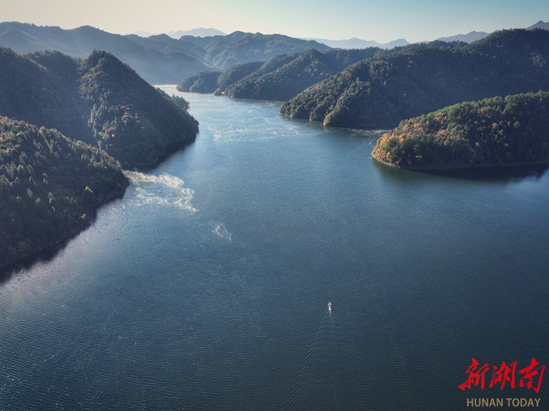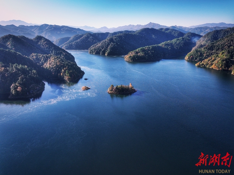 11月29日,城步白云湖国家湿地公园晴空如洗,湛蓝的湖水与层叠的山峦相映成趣,宛如一幅天然的山水画卷。白云湖突起于百米高坝之上,平均水深80余米,水源来自高山峡谷。湖南日报全媒体记者 童迪 周洋 摄影报道