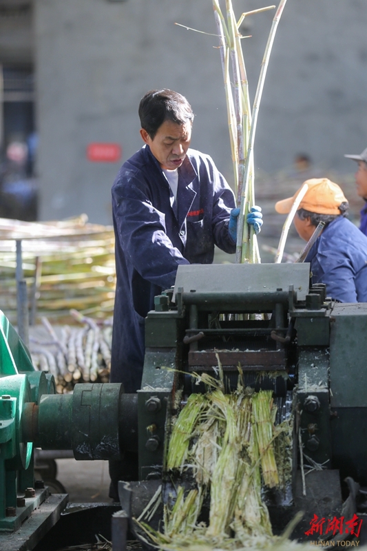 11月29日,隆回县山界回族乡老屋村,村民将收割的甘蔗榨汁。曾勇 孙中坤 摄影报道(湖南图片库)
