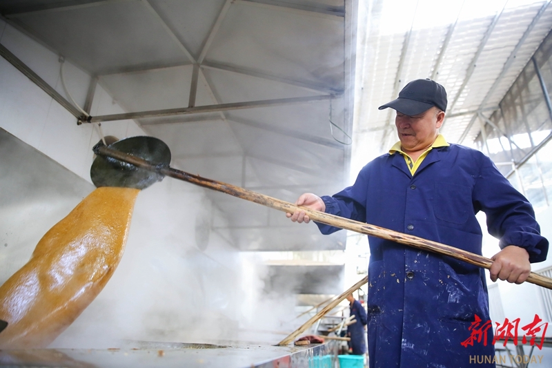 11月29日,隆回县山界回族乡老屋村,工人用传统古法技艺熬制红糖。曾勇 孙中坤 摄影报道(湖南图片库)