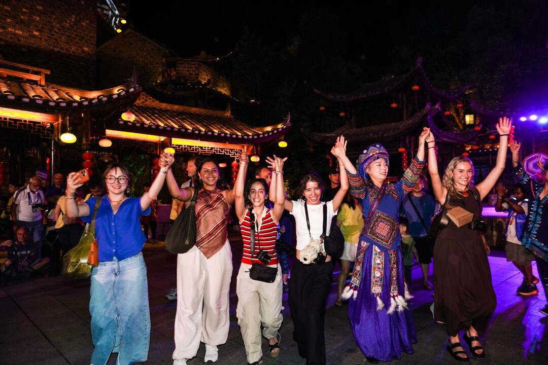 线上,芙蓉镇聚焦FACEBOOK、YouTube、Instagram、TikTok、X等海外主流社交媒体平台,以瀑布与吊脚楼交织的夜景、土家族风情表演的精彩片段,打造视觉化、场景化的内容矩阵。相关短视频海外曝光量突破10亿次,掀起“看见即种草”的社媒风暴,让品牌影响力实现全球化渗透,吸引全球旅人争相打卡。