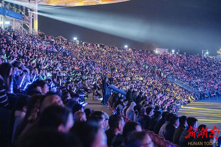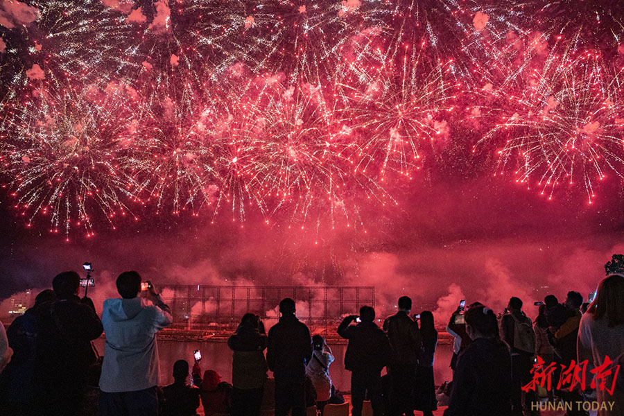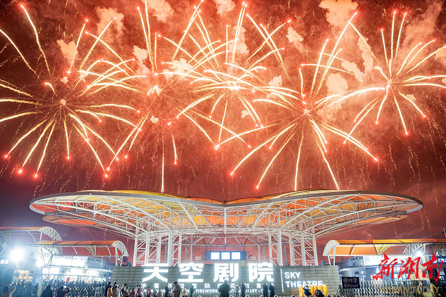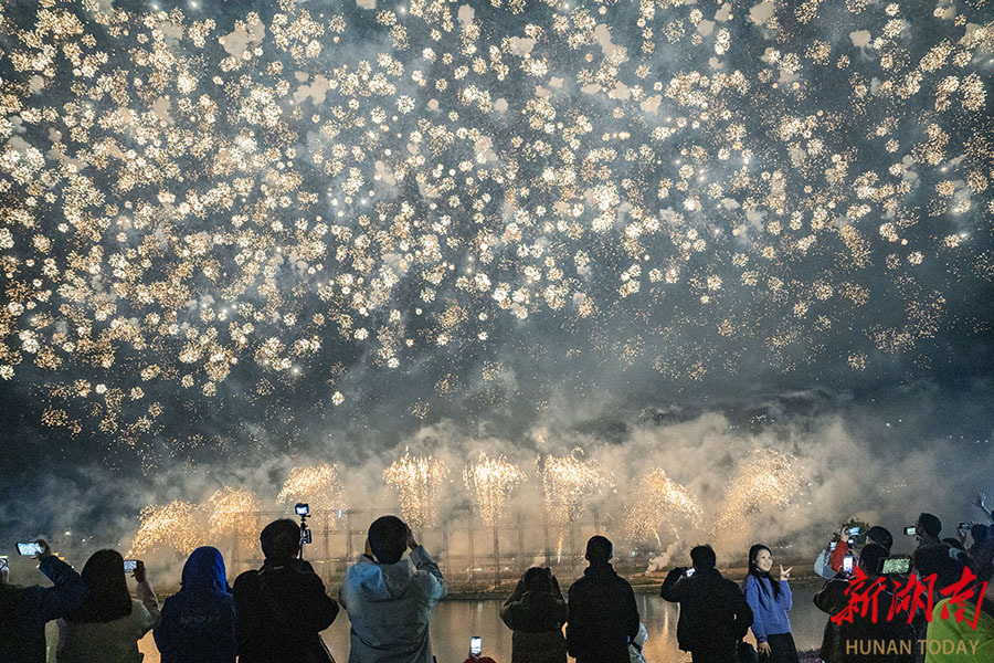 11月29日晚,浏阳天空剧院,绚丽的烟花以夜空为画布,勾勒出动态艺术画卷,为观众带来震撼的视觉享受。 湖南日报全媒体记者 李健 摄
