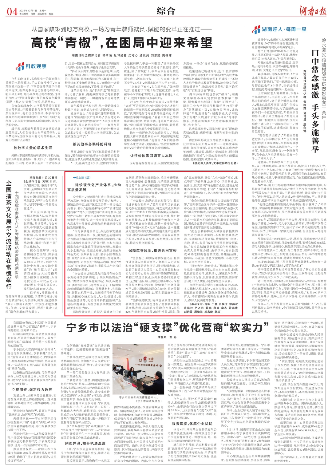 “全会科学擘画了‘十五五’时期全省高质量发展的宏伟蓝图,为今后的工作指明了方向、提供了根本遵循。”宁远高新区党工委书记毛昌麒说,将把学习贯彻全会精神作为当前首要政治任务,聚焦“高”和“新”的发展定位,全力主攻项目招引落地、强化科技创新、优化营商环境,在现代化产业体系建设上攻坚突破,将全会精神转化为推动园区提质增效的强大动力和生动实践,在全省发展大局中展现宁远高新区的担当作为。