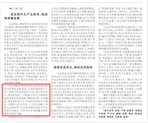 全会提出,持续用力打造内陆地区改革开放高地,增强高质量发展的动力和活力。茶陵县委书记、经开区党工委第一书记杨红兵表示,将以“创新成果转化年”“项目攻坚提质年”“对外开放提效年”活动为抓手,坚定农产品加工转化主导型发展方向,有力有效推进乡村振兴,进一步全面深化改革,扩大高水平对外开放,持续加快构建新时代茶陵发展新格局。