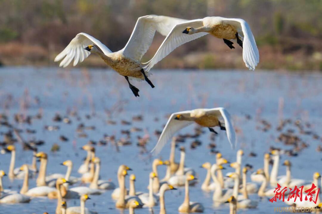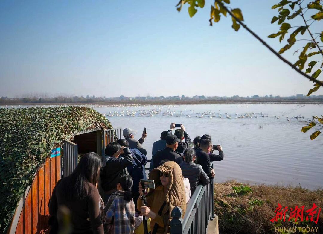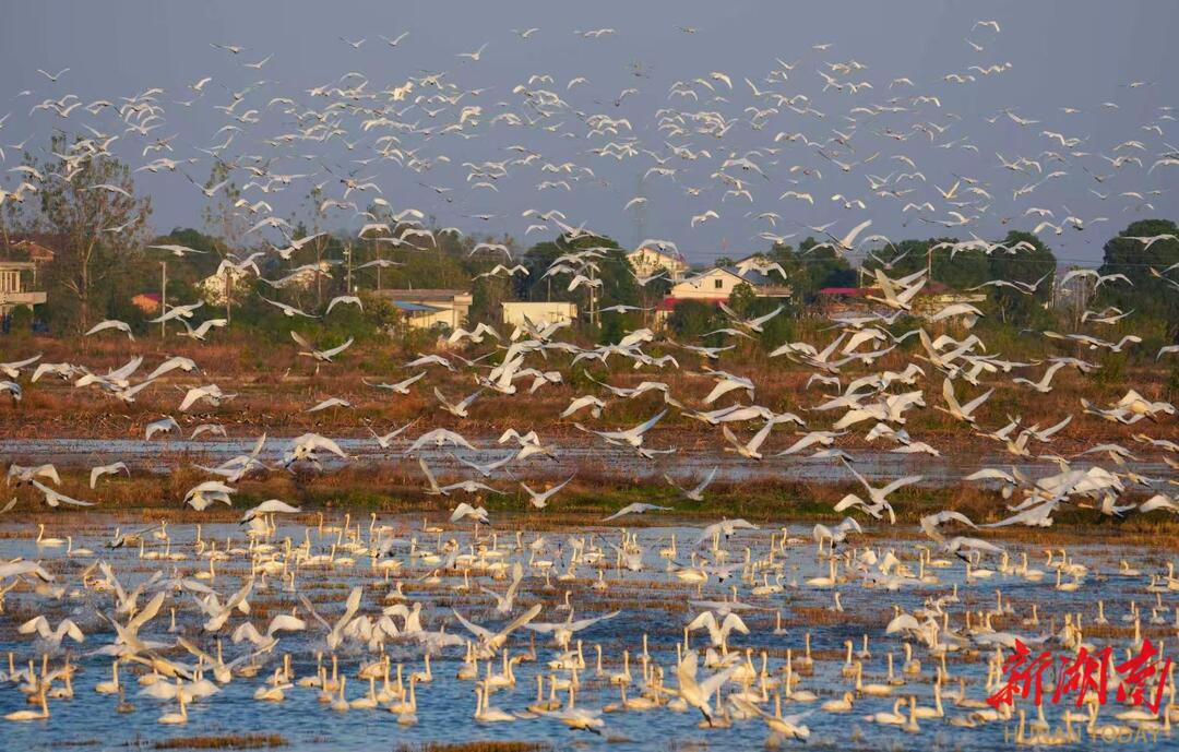 近年来,屈原管理区深耕生态保护,区域生态环境持续向好,东古湖已成为珍稀候鸟迁徙途中的 “生态驿站”,区域内已发现珍稀候鸟57种,总数量超过4万羽。如今,每年冬季的小天鹅集群已成为当地标志性生态景观,东古湖更跻身洞庭湖区生态名片、湖南最佳近距离观鸟胜地之列。生态红利持续转化为发展动能,不仅带火了本地生态旅游,更让 “观鸟经济” 成为推动乡村振兴、提升区域知名度的新引擎。(摄影:宋政军 周洋)