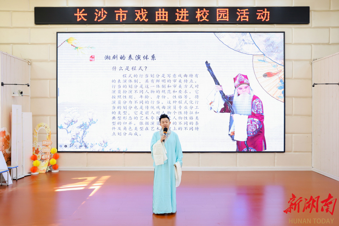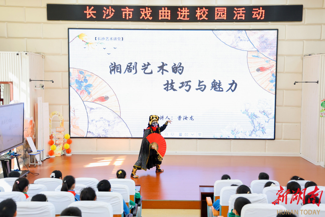 同步开展的“戏剧大师表演课”由专业艺术家指导高年级学生排练湘剧经典剧目《打猎》,从唱腔、身段到舞台呈现进行系统训练;湘剧“大师课”则特邀国家级传承人曹汝龙,为五年级学生讲授湘剧百年文脉,解析经典剧目,生动展现湖湘戏曲的独特魅力。