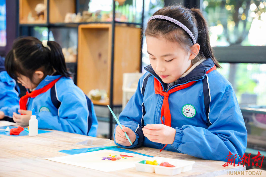 此次活动不仅是非遗技艺的传授,更是一场深入的文化启蒙与精神滋养。学生们在面塑造型、皮影操作、掐丝釉彩等工艺实践中感悟匠心独运,在湘剧的唱念做打间体味戏曲神韵,于潜移默化中增强对中华优秀传统文化的认同与自豪。更为重要的是,活动将非遗传承与“红领巾爱艺术”少先队课程有机融合,实现了美育与德育的双向赋能。学生在合作实践中提升审美素养,在戏曲故事里汲取家国情怀,真正实现了“以文化人、以美育人”的教育目标。