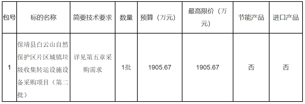 原链接:[公开招标]保靖县白云山自然保护区片区城镇垃圾收集转运设施设备采购项目(第二批)[正在下载]