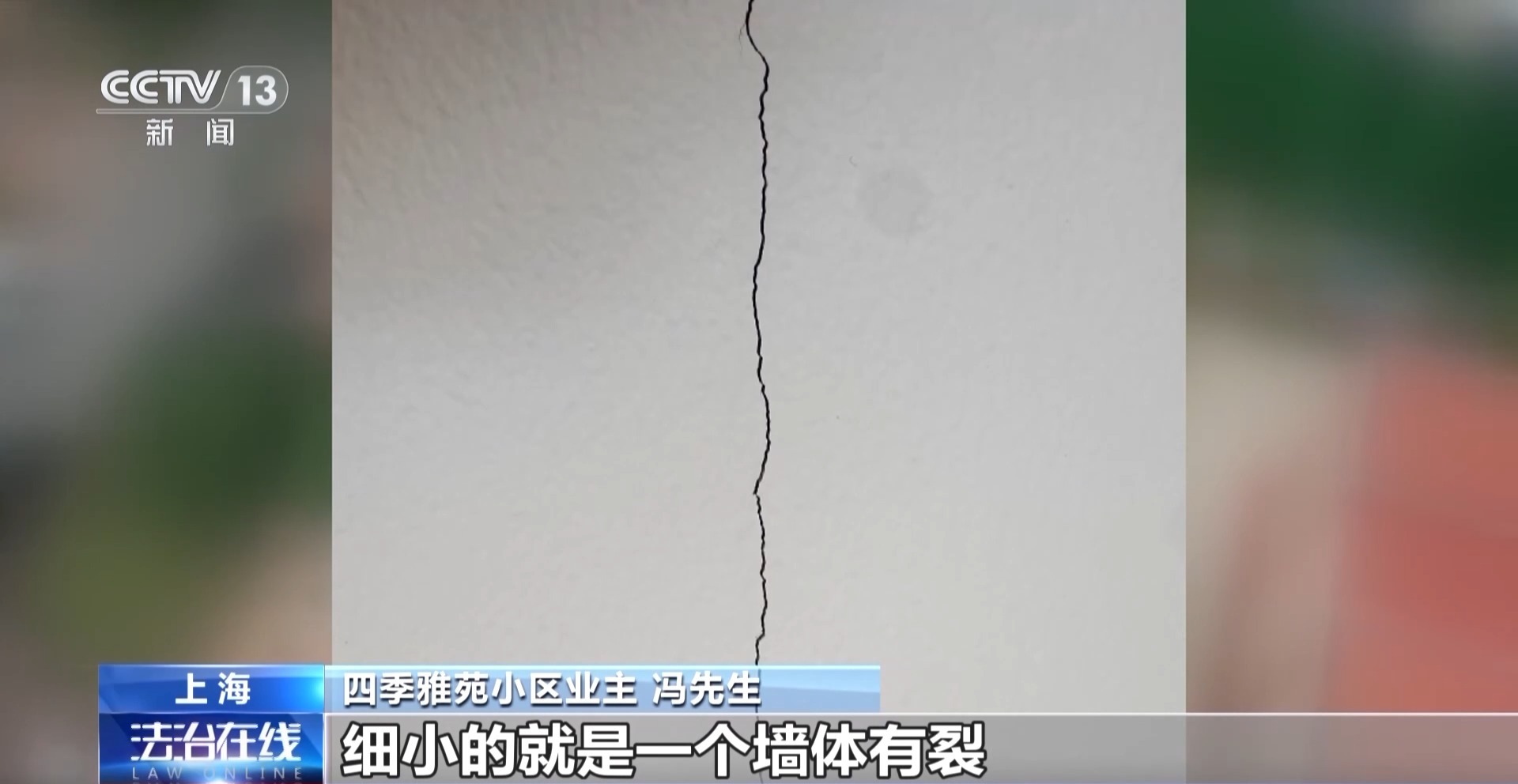 四季雅苑小区业主 冯先生:以前是没发现的,我邻居发现了问题以后,她跟我说的时候,我还说我家好像没有,然后过两天就发现墙体裂了。