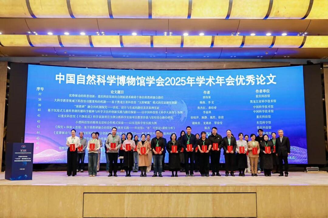 11月19日至22日,中国自然科学博物馆学会2025年学术年会在重庆召开,湖南省地质博物馆馆长李倩带队并做专题报告,副馆长钟琦及办公室有关同志参加。本届年会以“‘展教研’融合创新之路——自然科学博物馆赋能科技强国的新征程”为主题,聚焦标准化建设、馆校结合、多元化策展等关键议题,共话科学教育高质量发展。