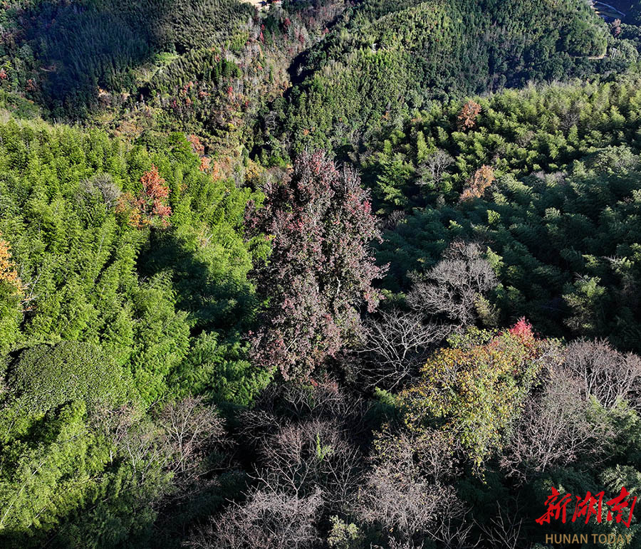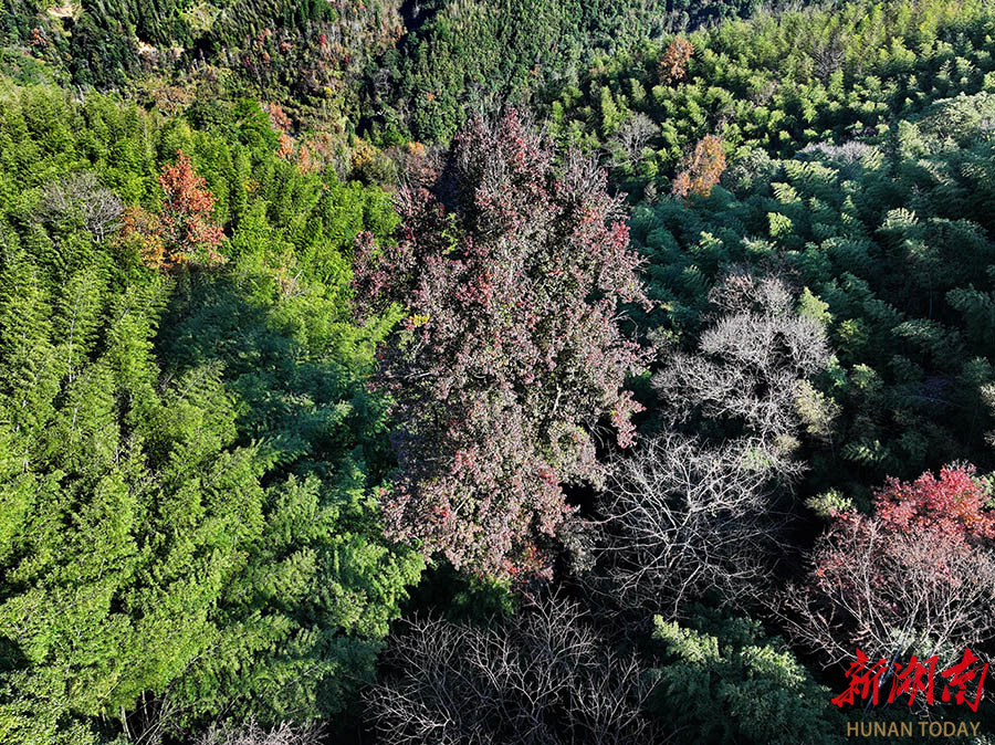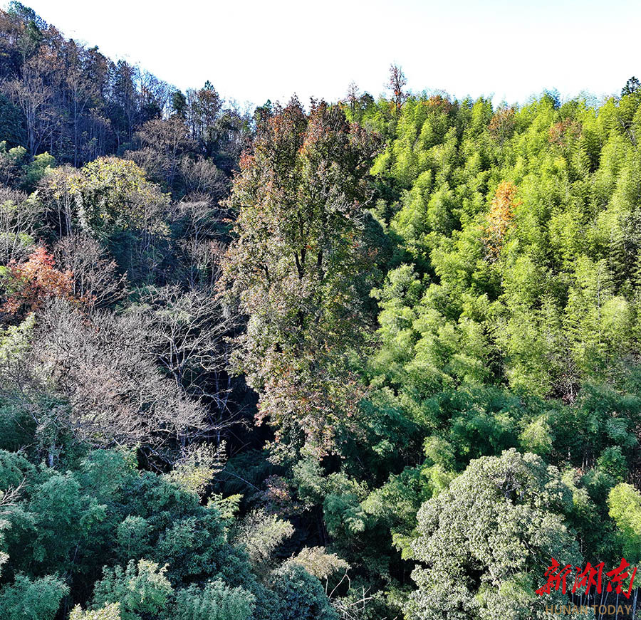 11月30日,位于绥宁县的南山国家公园候选区黄桑片区,50多米的枫香树身姿挺拔,在阳光下呈暗红色。枫香树通体笔直,秋季落叶,有长成巨树的条件。该树经专业测量,2023年被认证为“湖南第一高树”,树高达到54.075米,其强大的生命力展现出原始次森林的生态魅力。 湖南日报全媒体记者 童迪 周月桂 摄影报道