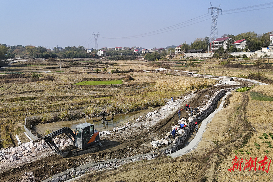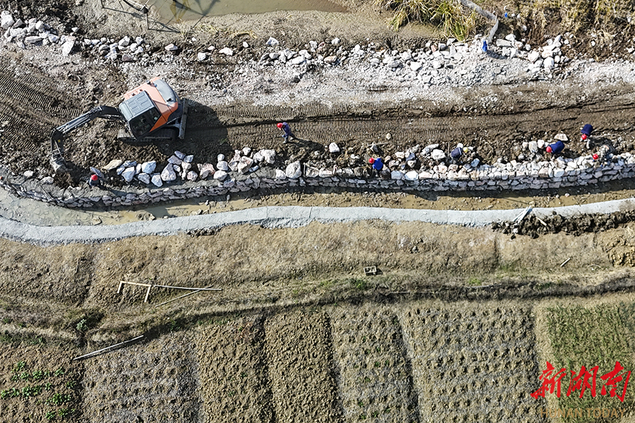 12月1日,娄底市娄星区石井镇水口村,工人在建设水渠。近年来,娄星区持续加强农村水利基础设施建设,通过兴修水渠、扩挖塘坝、加固岸坡、疏通河沟等一系列工程措施,为农业生产提供坚实支撑。 吴永华 摄(湖南图片库)